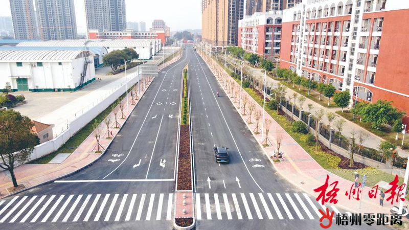 3月8日,車輛在干凈寬闊的三業路上行駛。據悉,龍騰小學周邊城市道路貫通(三業路)工程起點接三龍東二路,終點接三龍東三路,長度約600米,貫通后令整個片區路網更加完善,進一步提升附近市民和學生的出行環境。梧州日報記者 楊揚 攝