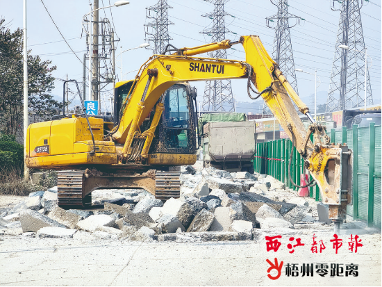 破碎車對地面進行破拆。西江都市報記者 姚藍婷 攝
