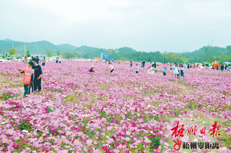 3月12日,游人在西部(岑溪)創業園格桑花海賞花。