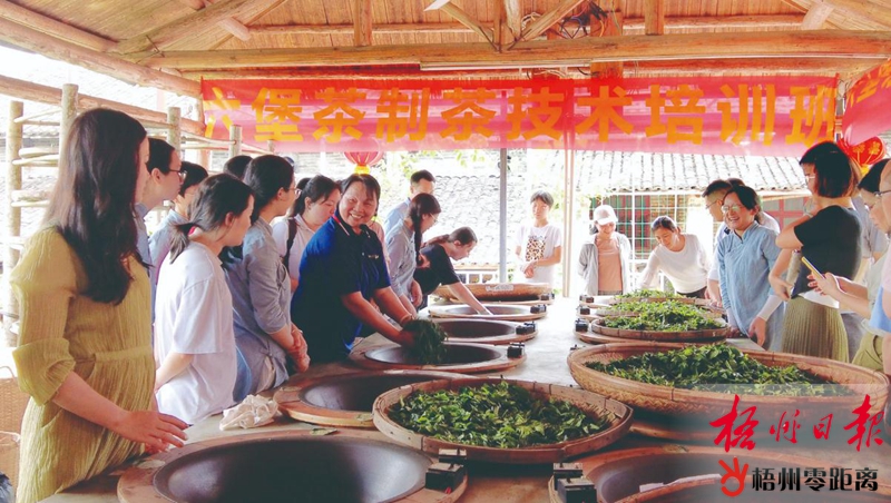 譚愛云多次舉辦制茶培訓班,免費給村民游客講授制茶技藝。 (資料圖片,由蒼梧縣六堡鎮(zhèn)人民政府提供)