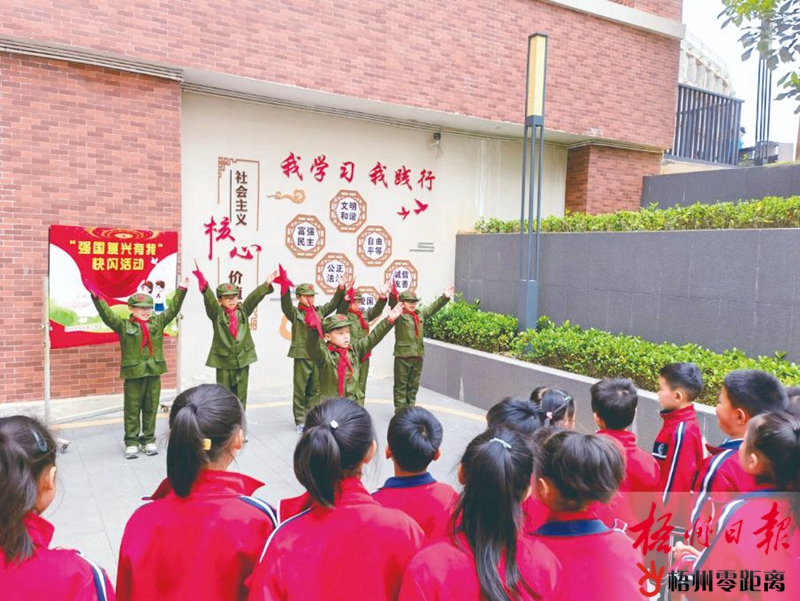 “青春是什么顏色的?如果給青春一種色彩,我認(rèn)為它是陽光的顏色,這顏色熾熱而恒久、熱情而奔放……”日前,在市民主路小學(xué)“強(qiáng)國復(fù)興有我”主題系列活動(dòng)啟動(dòng)儀式上,大隊(duì)輔導(dǎo)員魏老師用飽含激情的語言,講述著自己對(duì)青春、對(duì)信仰的理解。
