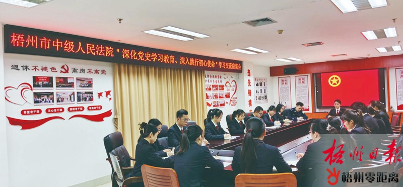 梧州零距離網(wǎng)-梧州日?qǐng)?bào)訊 近日,市中級(jí)法院組織青年干警召開“深化黨史學(xué)習(xí)教育深入踐行初心使命”主題交流座談會(huì),集中學(xué)習(xí)《中國(guó)共產(chǎn)黨章程》,深入交流“四史”學(xué)習(xí)心得,從黨的百年歷史中汲取前進(jìn)的智慧和力量,進(jìn)一步堅(jiān)定理想信念,激勵(lì)黨員干警熱情投身法治事業(yè)。