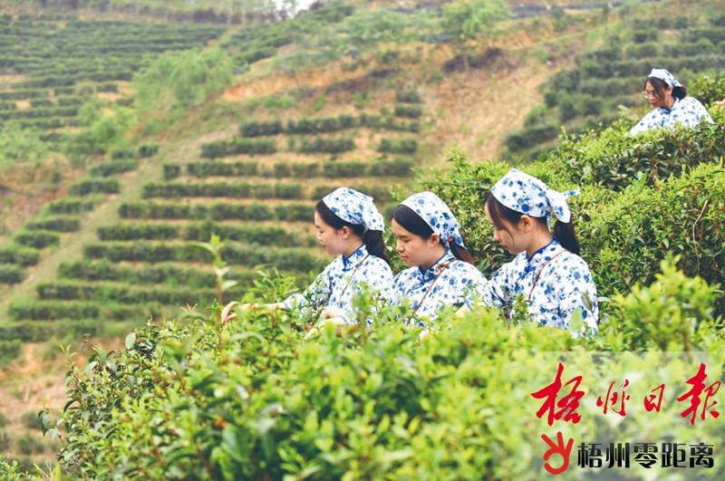 3月21日,蒼梧縣六堡鎮茶農在哈口茶場開采社茶。當天是春社日,六堡鎮群眾依照傳統舉行開茶節慶?;顒?,慶?;顒釉诋數囟鄠€村落和茶場同時進行,茶農們開采社茶,期盼今年茶葉豐收。梧州日報記者 何鎏 攝