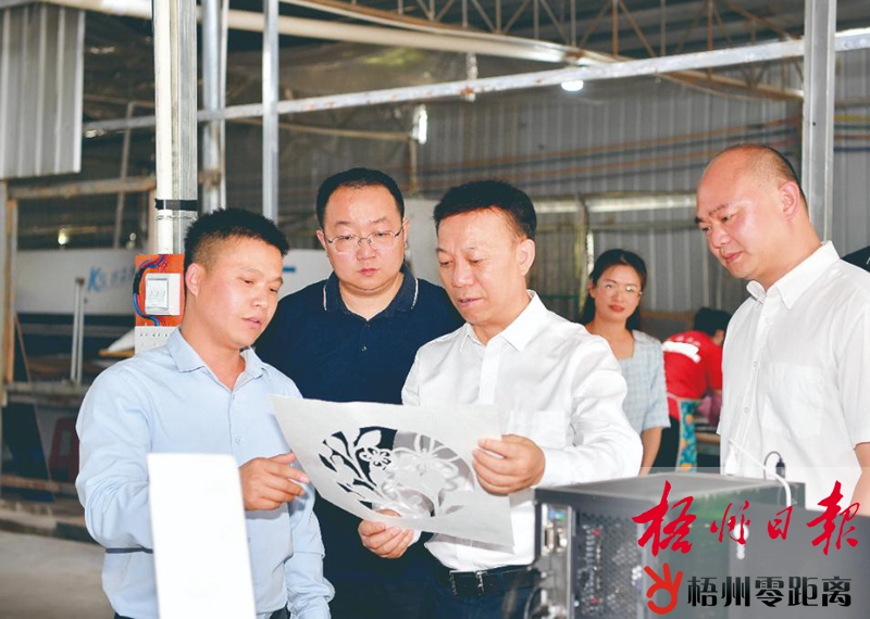 3月22日,市委書記蔣連生到藤縣就農村基層黨建、社會治理和鄉村振興等工作進行調研。圖為蔣連生在一家企業了解其生產的傳統工藝產品出口情況。梧州日報記者 李鴻榮 攝