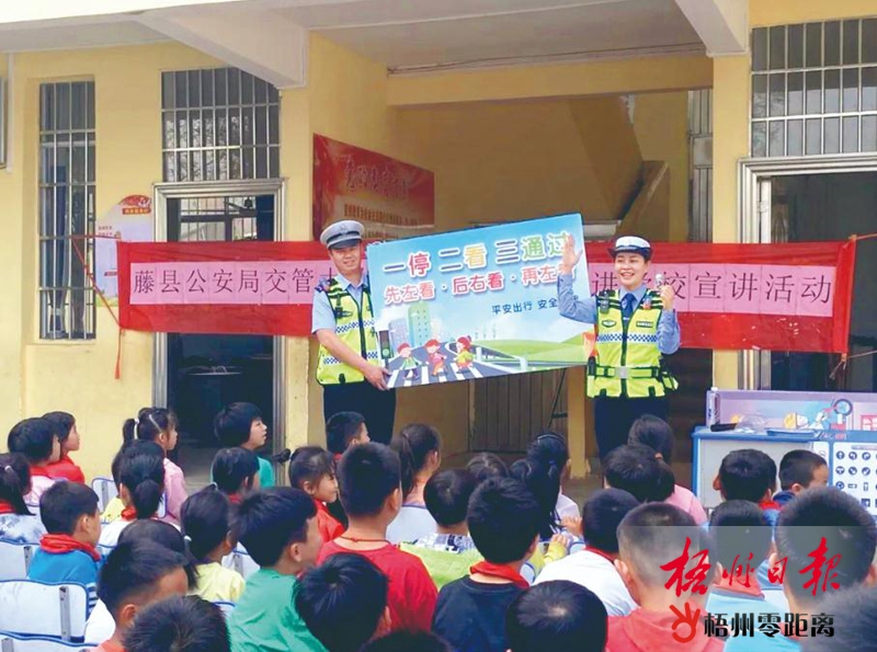 近日,藤縣公安局交通管理大隊宣傳小分隊到學校開展“文明守法平安回家”交通安全進校園活動。