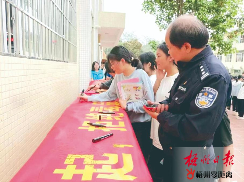 近日,藤縣天平鎮(zhèn)第一中學開展法制教育進校園活動,師生在“從我做起,拒絕毒品,反對邪教,爭當守法好公民”主題橫幅上簽名。