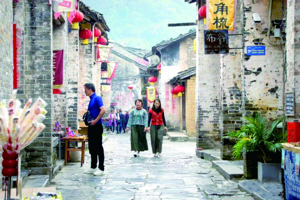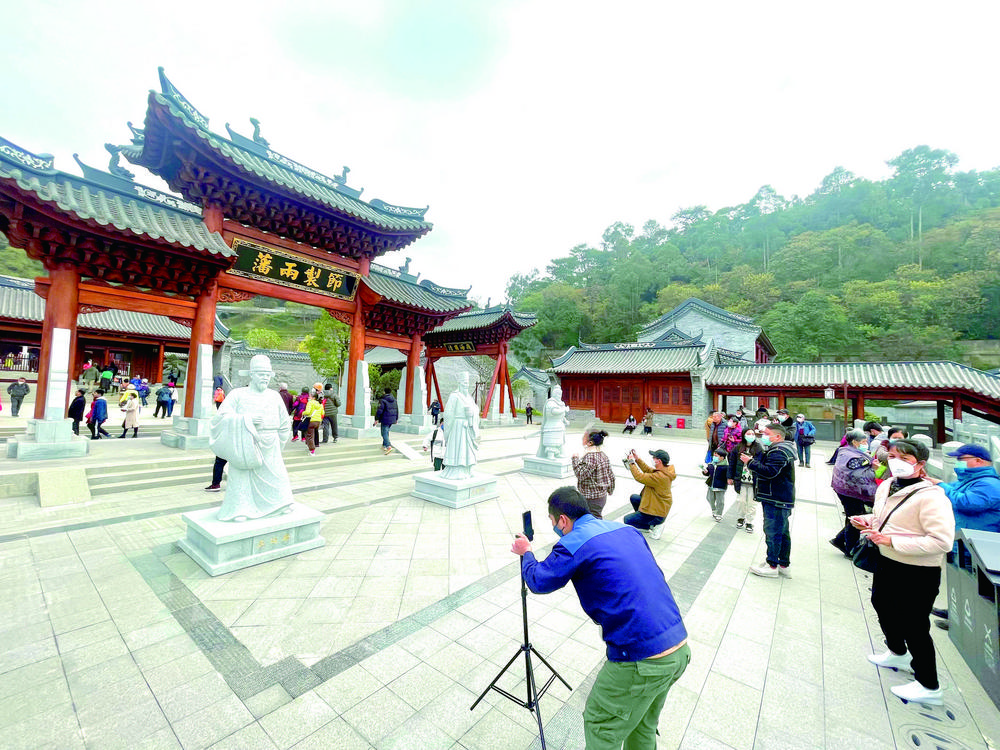 市民們在梧州明朝兩廣總督府文化旅游博覽區拍照留念。本報記者楊揚攝