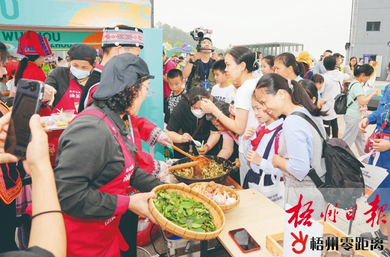 4月21日,在2023年“壯族三月三·梧州嘉年華”活動啟動儀式上,民族特色美食市集吸引眾多市民游客品嘗。梧州日報記者 楊揚 攝