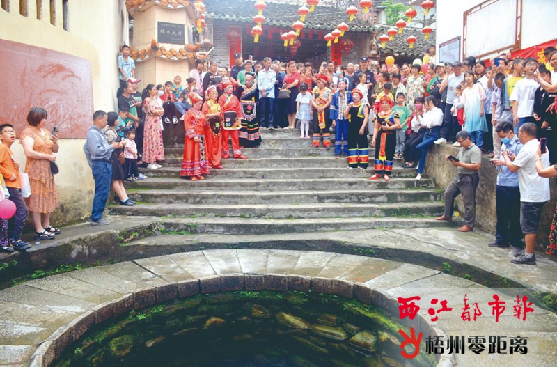 在古樟木大井旁,人們在對唱山歌。羅文 攝