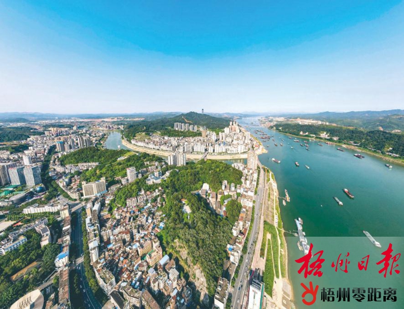 4月26日,陽光下,梧州市區青山碧水藍天更顯壯美色彩。