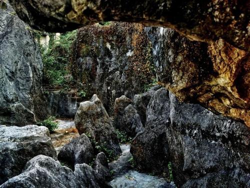 霹靂巖洞玲瓏,在這里看石,目不暇接,入眼成景,奇石數不勝數。洞中建有三層樓臺,巖下林木掩映洞口,石骨嶙嶙。洞外山清水秀,繁花似錦。洞內寬闊,猶如一個大廳,巖壁凹凸有致,地面平坦。