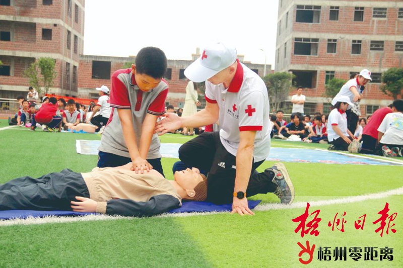 應(yīng)急救護培訓(xùn)師來到同學(xué)身邊講解溺水后的緊急救護、心肺復(fù)蘇技術(shù)要領(lǐng)。