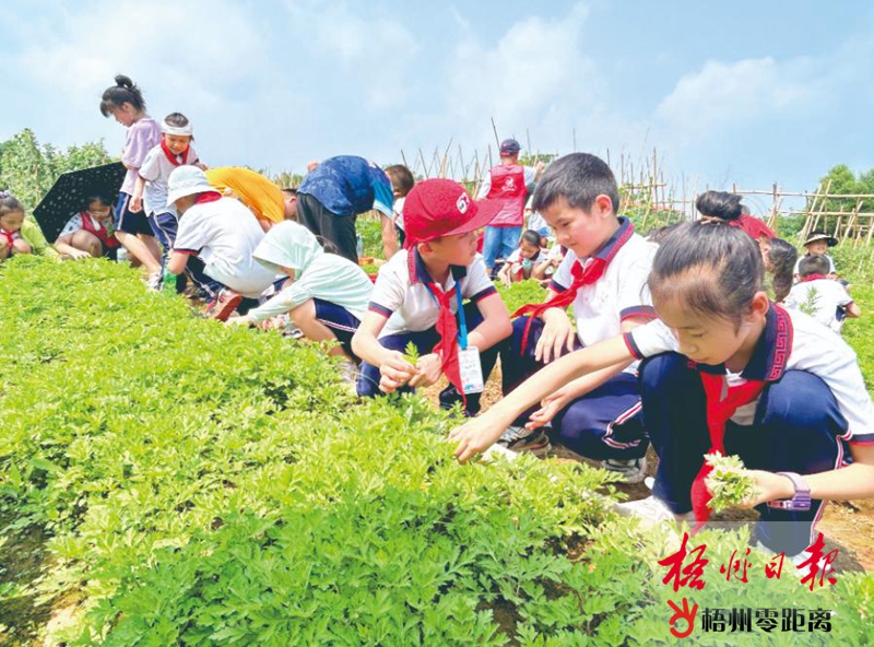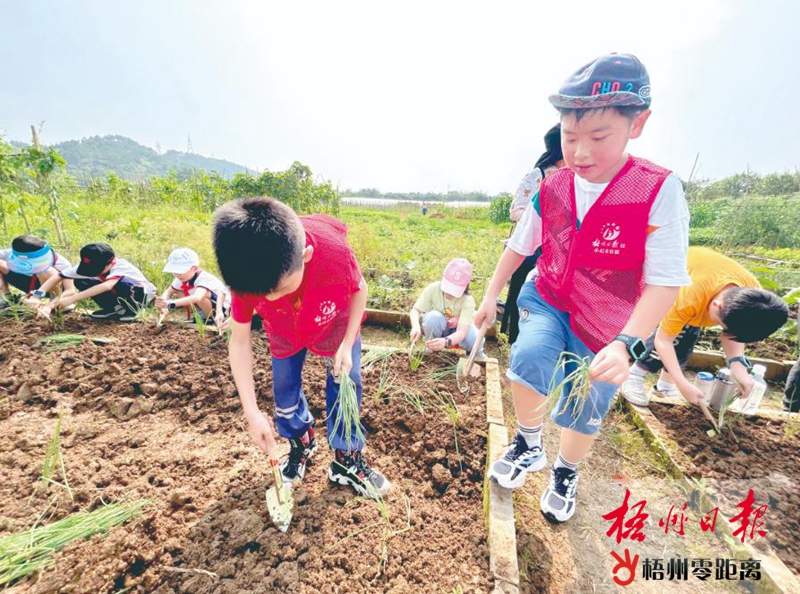 梧州零距離網(wǎng)-梧州日報訊(記者 覃競儀 通訊員 唐麗華)5月20日,梧州日報社小記者聯(lián)盟組織市鳳翔小學30名少先隊員和10名小記者到長洲區(qū)龍華村下羅組的市甜蜜李莊園,開展“以勞育美以勞育人”勞動教育實踐活動。活動中,學生們學習各種農(nóng)作物知識,體驗種植的樂趣,體會勞動的艱辛。