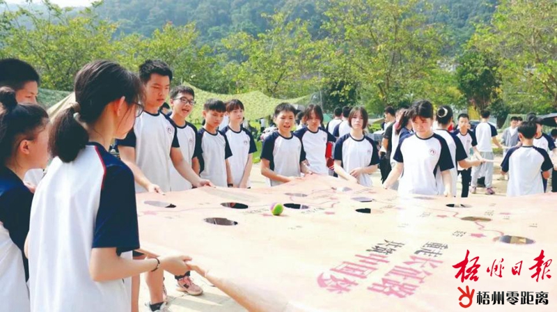 梧州零距離網(wǎng)-梧州日?qǐng)?bào)訊(記者 覃競(jìng)儀)日前,市培文學(xué)校初中部200多名學(xué)生到梧州軍博園開(kāi)展戶外綜合素質(zhì)拓展活動(dòng)。通過(guò)“俄羅斯方塊”“動(dòng)感五環(huán)”“重走長(zhǎng)征路”“廚藝大比拼”等活動(dòng),學(xué)生們?cè)趧趧?dòng)實(shí)踐中淬煉勞動(dòng)技能,在合作分享中涵養(yǎng)團(tuán)結(jié)精神。