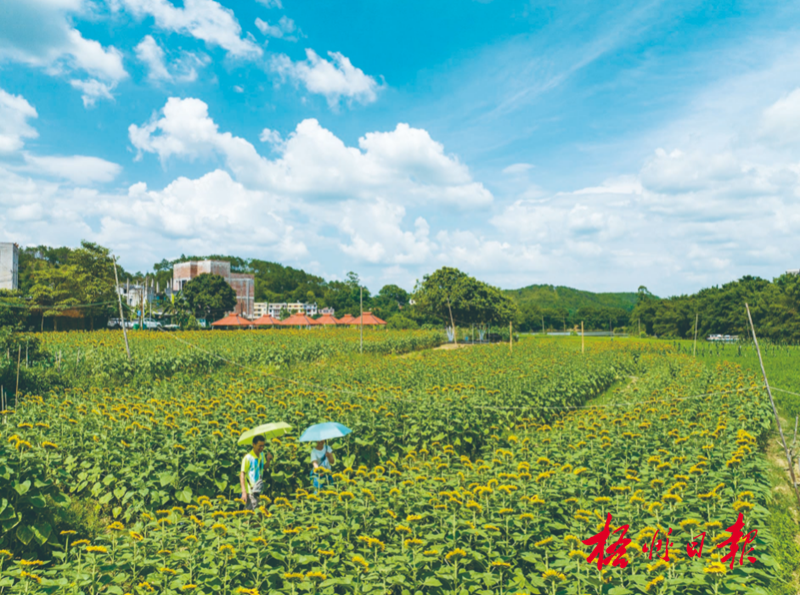 6月6日,游客徜徉在藤縣藤州鎮河口村的向日葵花田中。何華文 攝
