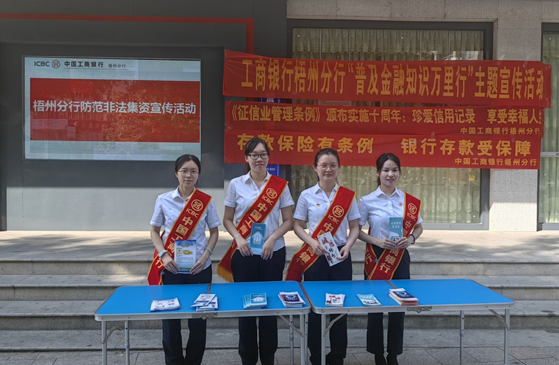 2023年6月,中國工商銀行梧州分行組織全轄各支行、各網(wǎng)點積極開展2023年“普及金融知識守住‘錢袋子’”和“普及金融知識萬里行”活動,將基礎(chǔ)金融知識、金融風(fēng)險防范、理性投資消費等影響群眾切身利益的知識作為教育宣傳重點,不斷提升消費者的金融素養(yǎng)和風(fēng)險防范意識。