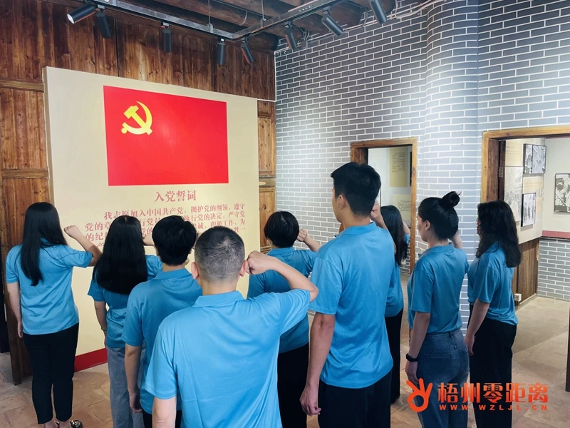 梧州日報(bào)社第一黨支部黨員在中共廣西特委舊址內(nèi)重溫入黨誓詞。