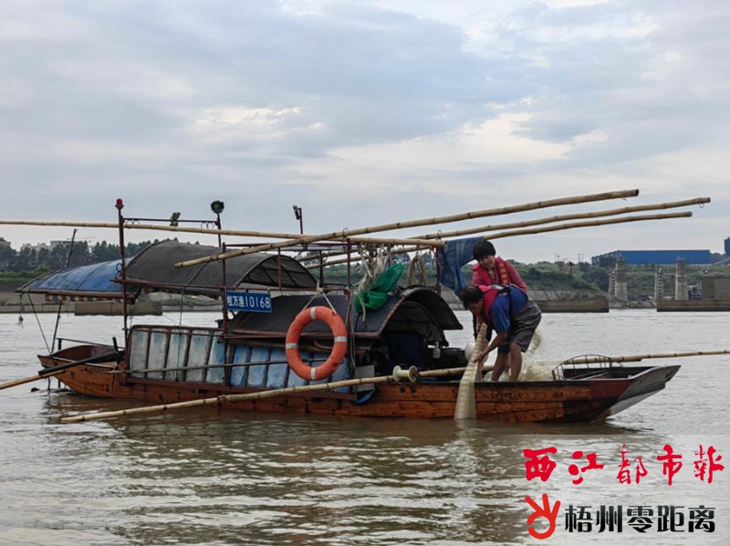 7月1日,漁民在長洲水利樞紐壩前水域開展捕魚作業(yè)。西江都市報記者 陳益銘 攝