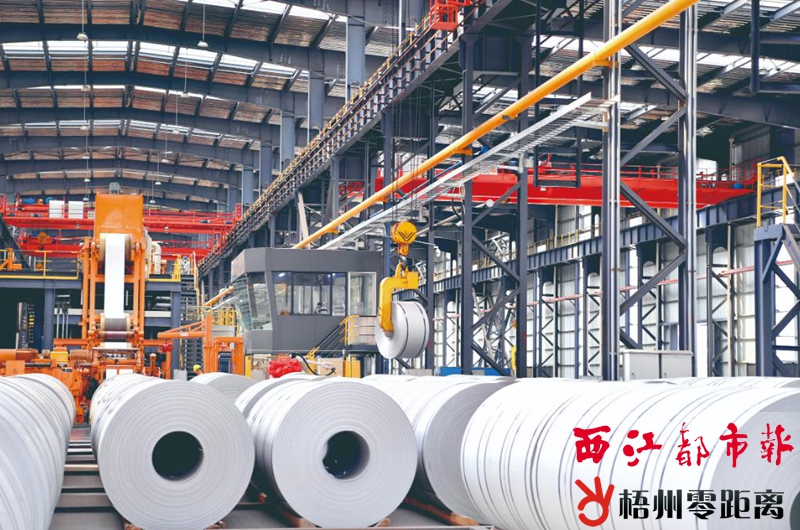 7月3日,在廣西梧州市金海不銹鋼有限公司,生產設備在生產不銹鋼板材。據了解,金海120萬噸不銹鋼固溶帶黑皮軋綠色生產線于6月底正式投入生產。該項目總投資12億元,包括建設3條全自動化固溶酸洗生產線,以及項目配套廢酸再生系統等,投產后預計可新增產值40億元。西江都市報記者 李鴻榮 攝