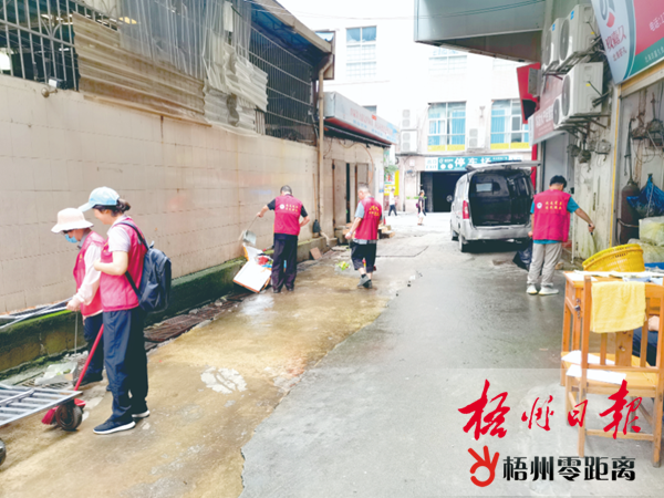 梧州零距離網-梧州日報訊 近日,萬秀區城南街道南中社區聯合“雙報到”單位開展環境整治志愿服務活動。