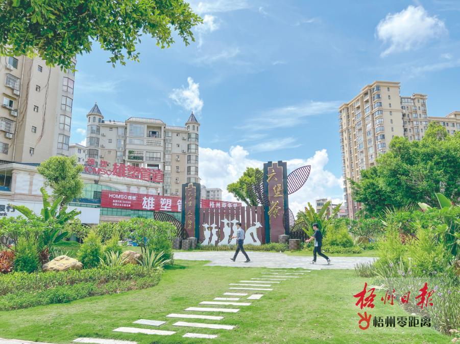 8月1日,新興三路龍魚轉盤附近小游園環境宜人,園內擺設六堡茶主題造型景觀。 據了解,我市持續推進廣西公園城市試點建設工作,通過規劃建設一批植入服務功能和文化元素的口袋公園,打造多功能的游憩公共空間,目前已有位于新興三路、新湖一路等地的臨街口袋公園建成并投入使用。梧州日報記者 陳凡 攝