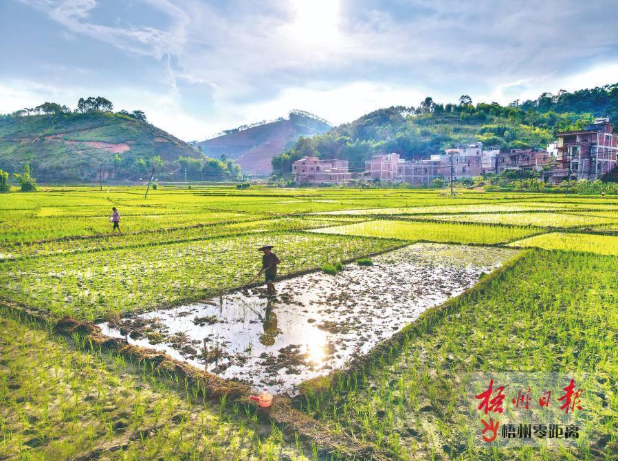 近日,藤縣埌南鎮雙底村村民收割完早稻后,冒著烈日在稻田無縫銜接進行育種、翻地、插秧等農事作業。梧州日報