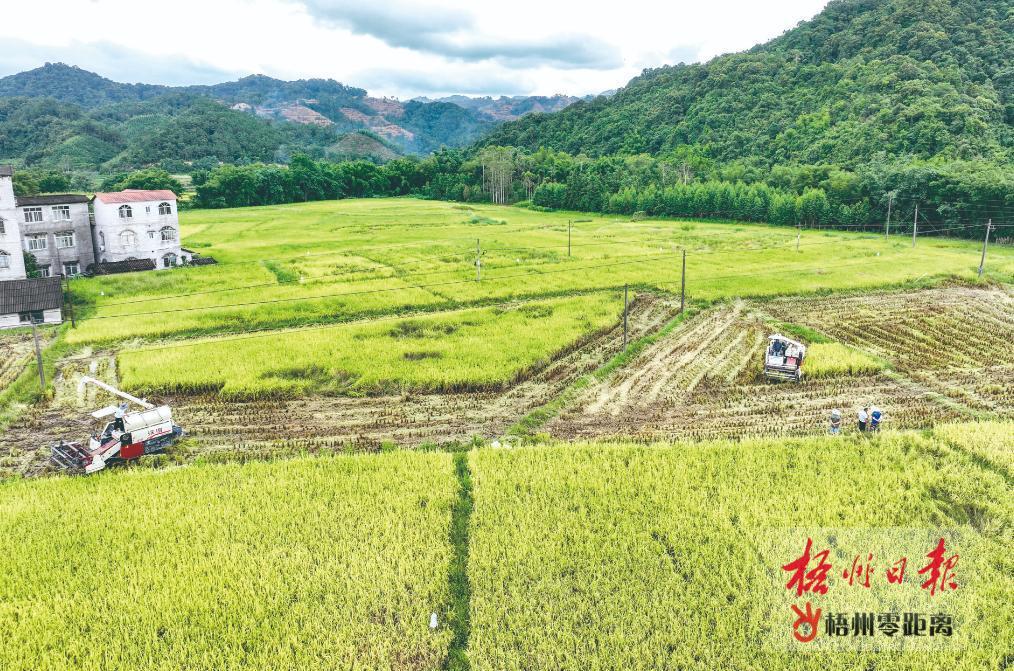 8月8日,在蒙山縣黃村鎮大化村一塊150畝連片“旱改水”水稻種植示范基地里,兩臺收割機在搶收成熟稻谷。 據了解,“旱改水”是蒙山縣近年來開始實施的農村綜合性改革試點試驗、實現農田提質增效項目之一,鼓勵農業企業與專業合作社連片流轉原來種植水果等經濟作物的田地種植水稻,全力整治耕地“非糧化”。 黃勝林 張海斌 攝