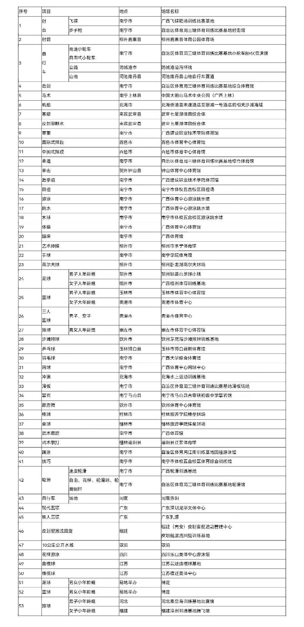 第一屆全國學生(青年)運動會將于2023年11月在廣西舉辦,經研究,現將運動會(公開組)項目布局方案印發你們,請遵照執行。