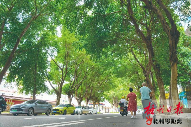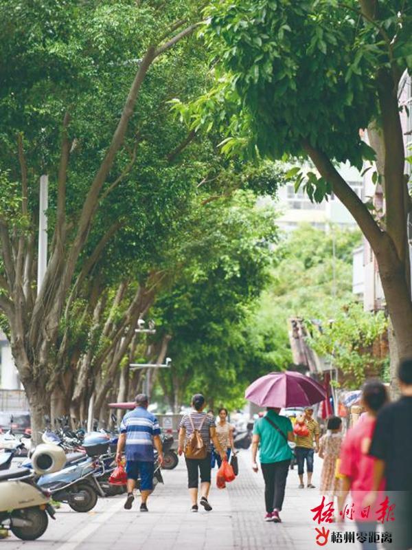 銀湖南路周邊都是居民小區(qū),居民出門就有天然“遮陽傘”。