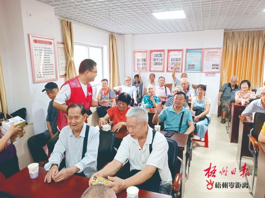 志愿者通過有獎問答幫助老年人記住社會主義核心價值觀的內容。
