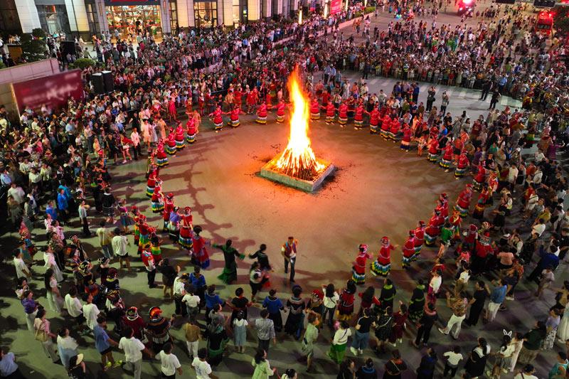擊石取火、火把驅害蟲、祭送布谷鳥、抹黑臉、打磨秋……隨著彝族火把節的到來,8月的百色市隆林各族自治縣熱鬧非凡。彝族同胞與五湖四海的游客圍著篝火載歌載舞,共品長桌宴暢敘友情。