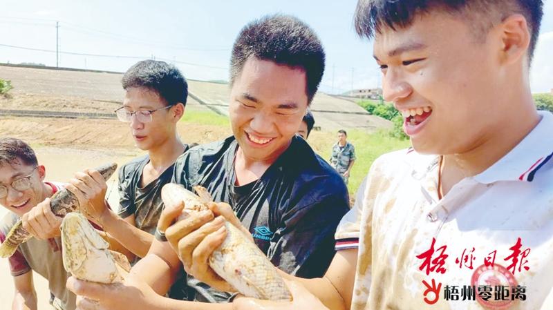 比比誰抓的魚最大。蘇靜靜 攝 本版圖片除署名外由記者 覃競儀 攝