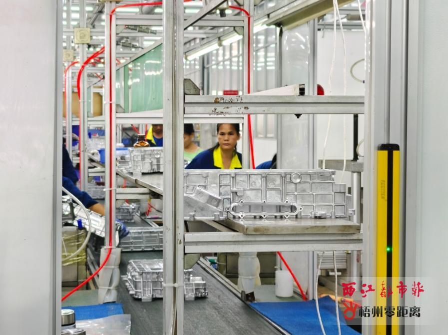 中秋國慶假期放假前夕,記者來到梧州臨港經(jīng)濟區(qū)循環(huán)片區(qū)的梧州市鴻圖精密壓鑄有限公司(以下簡稱“鴻圖壓鑄公司”),源源不斷的訂單使得企業(yè)的各條生產(chǎn)線滿負荷生產(chǎn)。在比亞迪機械加工車間里,機械聲此起彼伏,工作車輛往來穿梭,一個個新能源汽車電控箱體在流水線上有序流轉(zhuǎn),到處是一派繁忙景象。