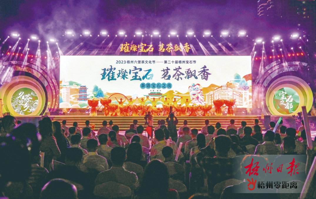 梧州零距離網(wǎng)-梧州日報訊(記者 姚藍(lán)婷)秋風(fēng)拂面,樂曲激昂。10月15日晚,“璀璨寶石 茗茶飄香”2023梧州六堡茶文化節(jié)—第二十屆梧州寶石節(jié)“茶語寶石”之夜晚會在市政廣場舉辦。