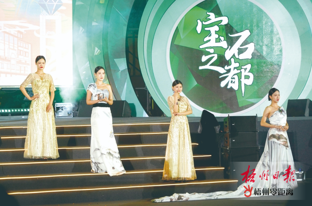 10月15日晚,在“茶語寶石”之夜晚會上,模特穿戴展示寶石飾品設(shè)計大賽獲獎首飾作品。梧州日報記者 陳凡 攝