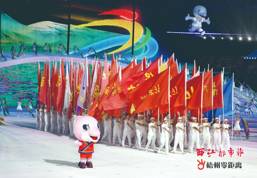“無體育不教育,無運動不青春。”晚8時許,伴著輕快的樂曲,運動員在山水間走出,入場式開始。在廣西舉行的首屆學青會吸引了來自全國101個代表團的近1.8萬名運動員齊聚廣西,共赴青春之約。