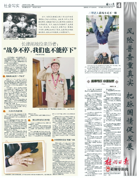 作品:《長(zhǎng)津湖戰(zhàn)役親歷者:“戰(zhàn)爭(zhēng)不停,我們也不能停下”》(刊登:《梧州日?qǐng)?bào)》2021年11月8日)