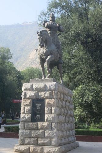 穿過五泉山山門后,迎面即會(huì)看到身穿鎧甲、身跨戰(zhàn)馬、抱拳拱手的霍去病塑像。