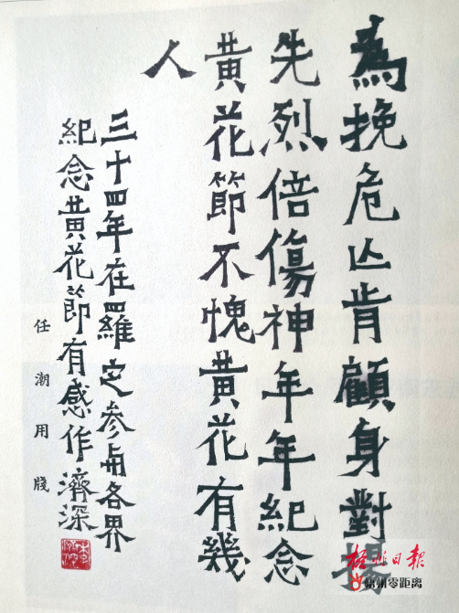 1945年3月,李濟深參加黃花崗七十二烈士紀念大會時所作詩詞。 (圖片選自中央文獻出版社《李濟深畫傳》)