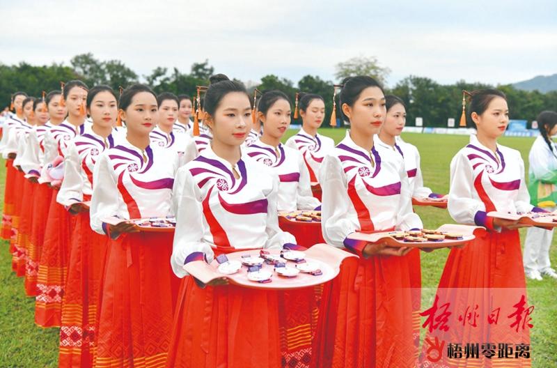 志愿者禮儀隊(duì)為賽事頒獎(jiǎng)等儀式提供服務(wù)。梧州日?qǐng)?bào)記者 何鎏 攝
