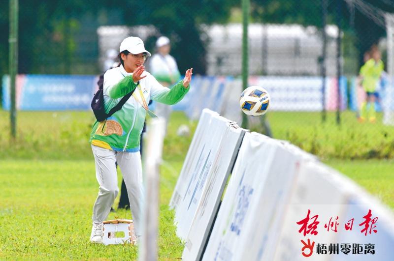 青年志愿者“小青芒”出色完成賽事服務(wù)。 梧州日?qǐng)?bào)記者 何鎏 攝