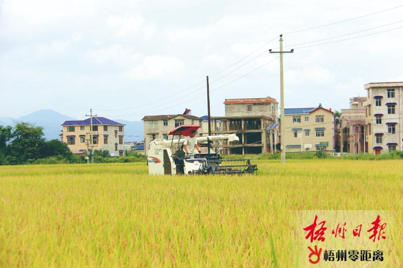 此前,收割機(jī)在蒼梧縣沙頭鎮(zhèn)橫江村進(jìn)行收割作業(yè)。覃劍玲 攝