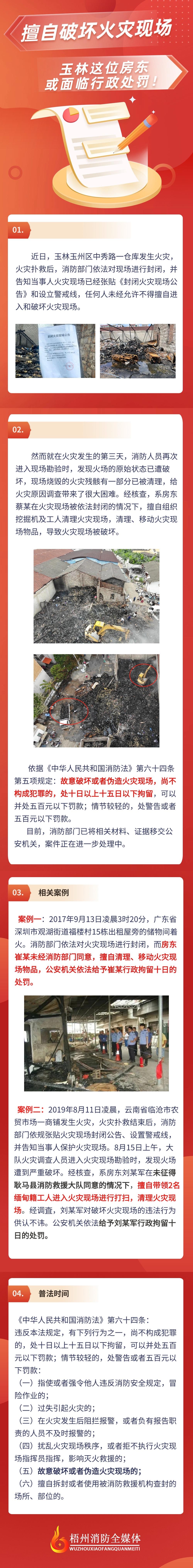 擅自破壞火災現場, 玉林這位房東或面臨行政處罰!