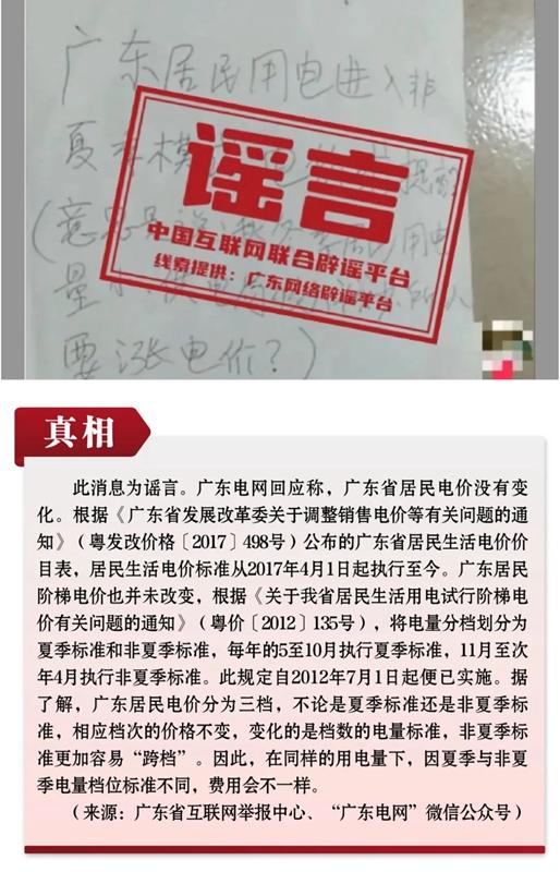 謠言8:廣東居民階梯電價進入“非夏季標準”,要漲價了?