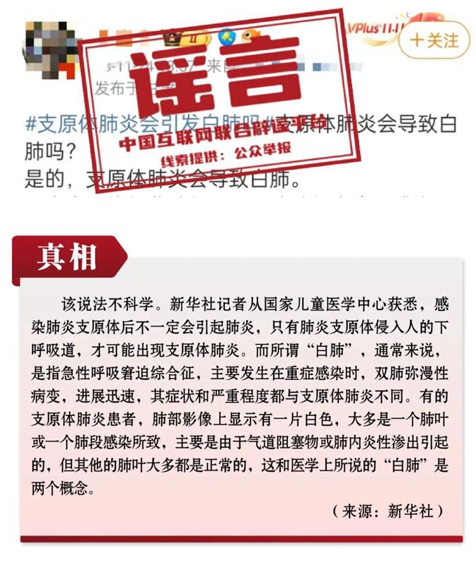 謠言1:感染肺炎支原體一定會得肺炎?會出現“白肺”?