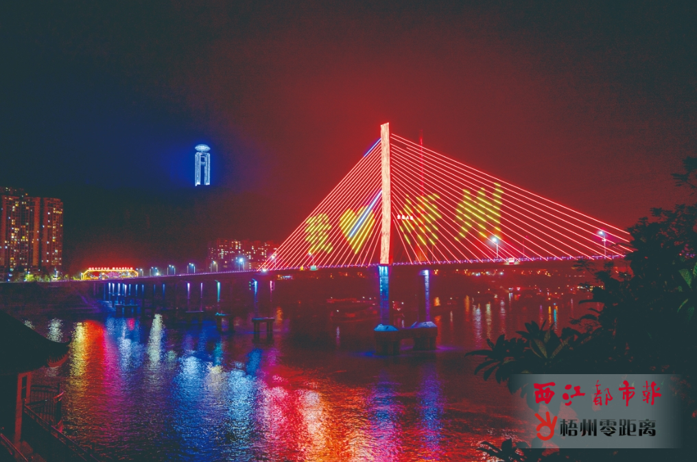 為優化城市景觀、提升旅游體驗,近年來,梧州市區積極營造地標建筑夜景氛圍,升級夜景燈光裝飾,打造西江路時光隧道、西江明珠塔、云龍大橋、鴛江大橋等一批夜景燈光打卡點,受到市民游客喜愛。