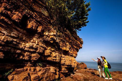 幾千年前火山噴發留下的印記,讓道坦巖紅石公園里形成了特有的紅色巖質,頁巖、火山巖、海蝕地貌、摩崖形成了美人床、白龍戲水、紅巖龜等自然奇特景觀,大自然的鬼斧神工,讓道坦巖成為孩子們研學科考的戶外教室。