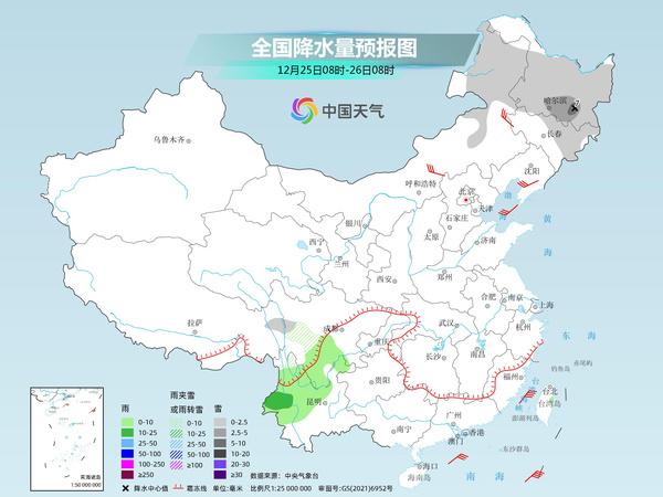 具體來看,中央氣象臺預計,今天內蒙古東北部、黑龍江、吉林東部、川西高原南部等地的部分地區有小到中雪或雨夾雪,其中,黑龍江南部局地有大雪。云南西部和北部、四川南部等地的部分地區有小到中雨。