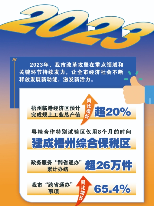 此外,我市進一步擴大政務服務“跨省通辦”范圍,提升服務效能,堅持“企業項目發展到哪里,政務服務觸角就延伸到哪里”,推動廣東合作7市共2251項政務服務事項可在梧州辦理,梧州共574項政務服務事項可在廣東辦理,去年累計辦結超26萬件。目前,我市“跨省通辦”事項同比增長65.4%。