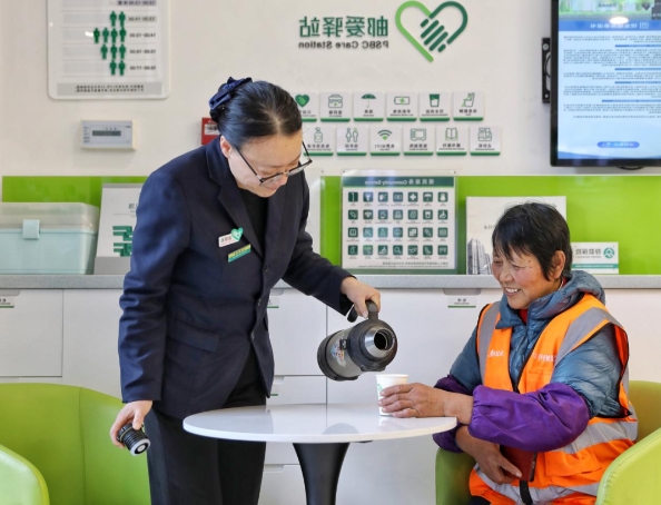如果你手機沒電了,口渴了沒地方喝水,奔波累了沒地方休息……你可以就近尋找中國郵政儲蓄銀行分散在大街小巷的營業網點,這里的“郵愛驛站”——是你的第二個“家”。 為切實履行社會責任,充分展現大行擔當,郵儲銀行在營業網點積極建設“郵愛驛站”,打造有溫度可持續的愛心公益平臺,為有需要的社會公眾提供便捷、溫暖、貼心的愛心服務。截至2023年12月,郵儲銀行累計建設郵愛驛站4861處,實現省級和地市級100%覆蓋。 戶外勞動者的暖心港灣 依托各地“郵愛驛站”,郵儲銀行切實有效解決廣大戶外勞動者就餐、飲水、休息等實際困難,讓更多戶外勞動者感受到溫暖和關愛,助力營造全社會尊重勞動、關愛勞動者的良好氛圍。 張先生是一名快遞員,幾年前從家鄉來到湖北省隨州市,每天早出晚歸,忙著卸貨、分揀包裹,穿梭于大街小巷收發快遞。網購節期間,張先生每天的工作量倍增,夏日的午后是一天最熱的時候,郵儲銀行當地網點的“郵愛驛站”就成了他納涼午休的好去處。 “干我們這行的總是在路上,以前送件累了,就隨便找個陰涼處歇歇腳,現在有了‘郵愛驛站’,中午來納涼、加熱飯菜,順便給手機充電,很方便!”張先生說。 郵儲銀行隨州市分行在轄內營業網點建設的“郵愛驛站”,配備飲水機、微波爐、醫藥箱、雨傘等多種便民設施,為環衛工人、快遞小哥、外賣員等戶外勞動者及新市民等客戶群體提供關愛服務,成為“冷可取暖、熱可納涼、渴可飲水、累可歇腳、雨可棲身”的服務專區。 在江蘇,常常會看到戶外勞動者走進郵儲銀行營業網點“郵愛驛站”。 “我們沒想到能有這樣的地方,能讓我們天冷了喝點熱水,天熱了避避太陽,下雨了躲躲雨,這兒啊,就是我們的小家。”環衛工人說。